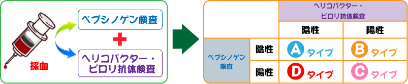 胃がんABC検診とは、2種類の血液検査を組み合わせ胃がんになりやすいかどうかを調べる検査です。