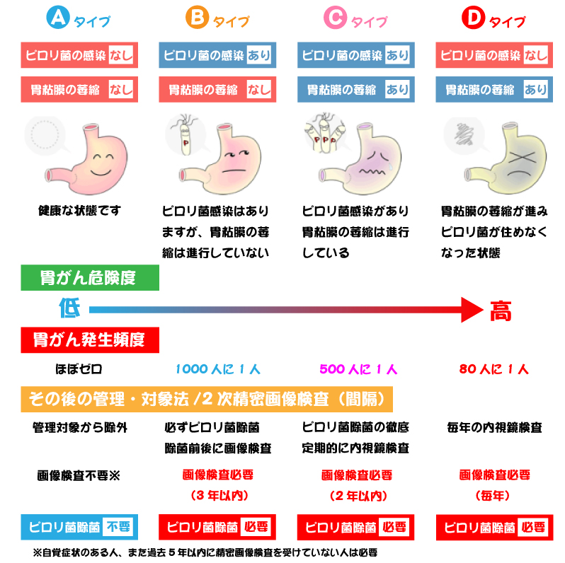 被験者が胃がんになりやすい状態かどうかをA~Dの4群にします。